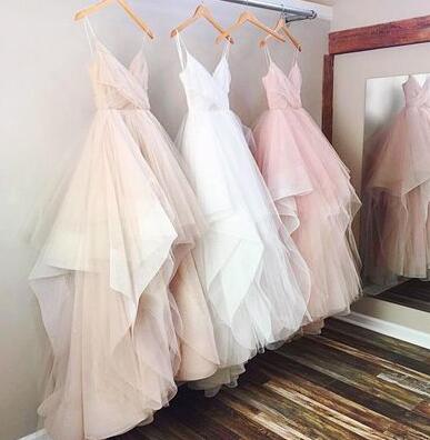 Spaghetti Straps Tulle Blush Prom Dresses,Long Prom Dresses,Sweetheart Formal Gown,Charming Prom Dress,Cheap Prom Dress,2018 Prom Dress