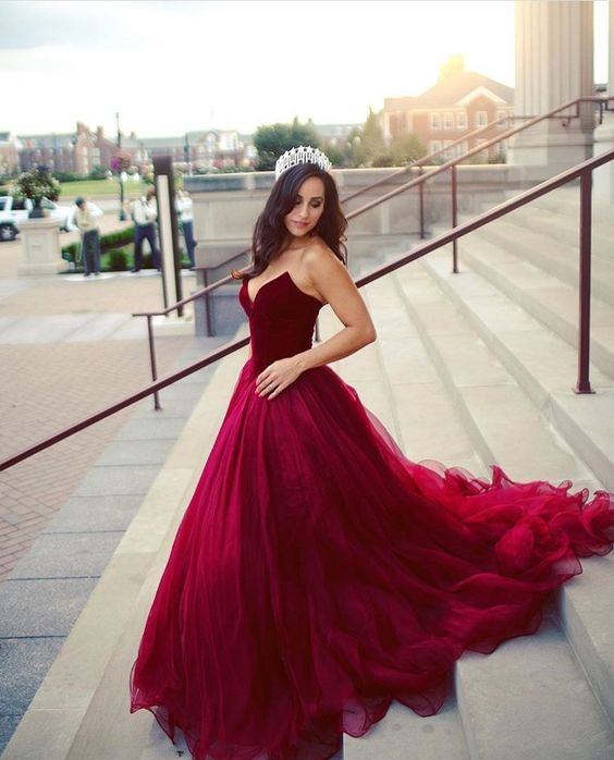 Sweetheart Burgundy Velvet Tulle Formal Prom/Evening Dress,Ball Gown Sweet 16 Evening Dress Under 200