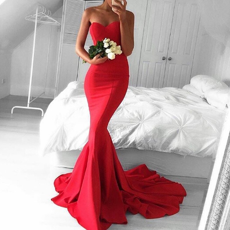 Sweetheart Mermaid Red Satin Prom Dresses,Mermaid Satin Evening Dress,Red Mermaid Bridesmaid Dress