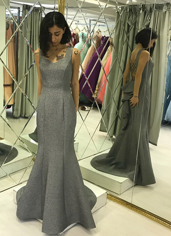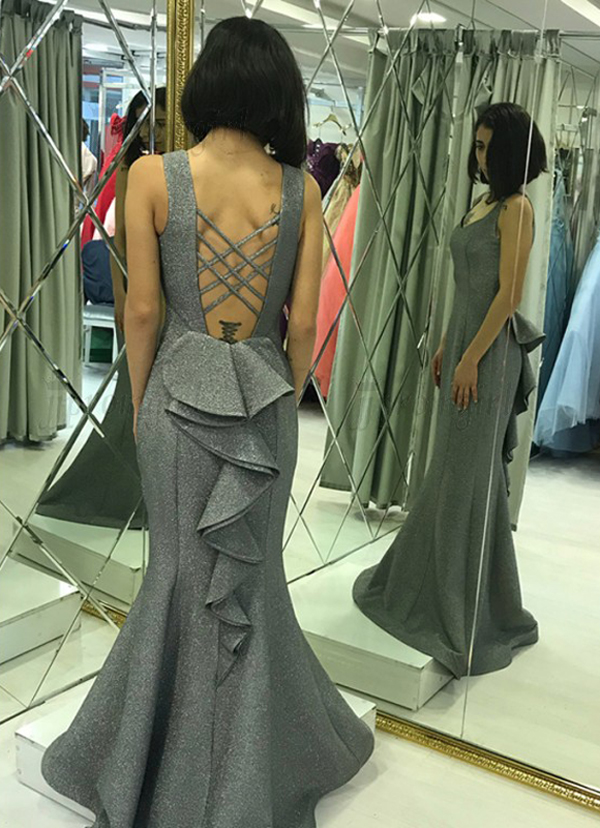 Stylish Mermaid Square Neck Criss Cross Straps Sparkly Satin Prom/Evening Dress