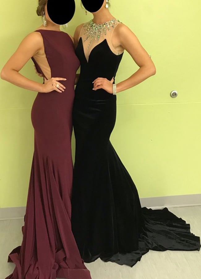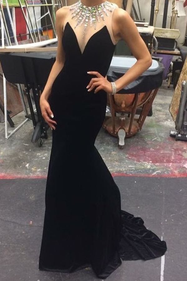 Fashion Mermaid Jewel Sleeveless Black Long Mermaid Prom/Evening Dress With Beading