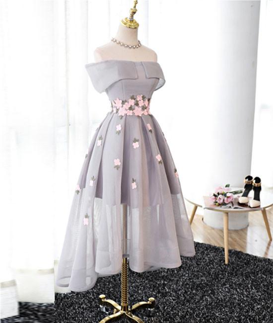 Off Shoulder High Low Lace Prom Dress,Front Short Back Long Pretty Homecoming Dress with Lace