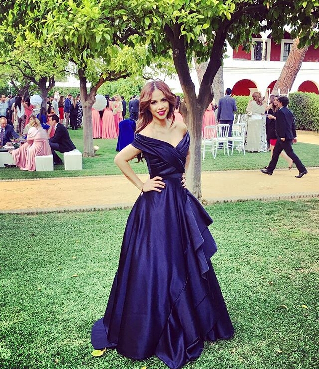 Description for this Off-The-Shoulder Navy Blue Long Prom/Evening Dress .