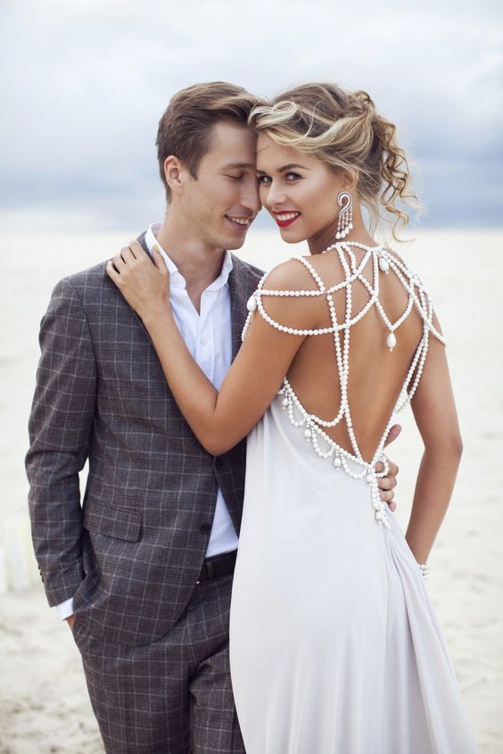 Sexy Pearl Back Dusty Blue Long Prom/Evening/Holiday Dress