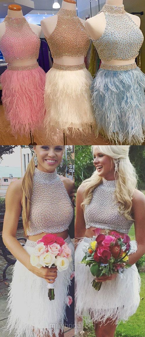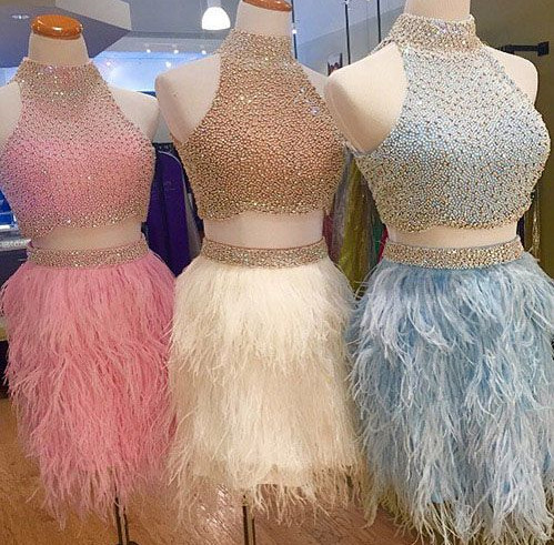 2.Color: picture color or other colors, there are more than 100 colors are available, please contact us for more colors for this Feather Crystal Two Piece Prom/Homecoming Dress.