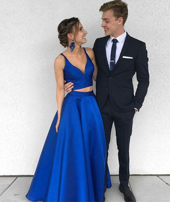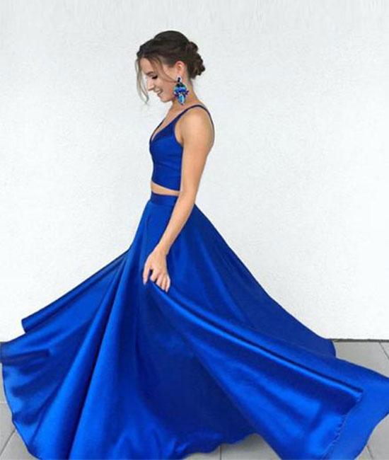 2.Color: picture color or other colors, there are more than 100 colors are available, please contact us for more colors for this SIMPLE TWO PIECES ROYAL BLUE SATIN LONG PROM DRESS, BLUE EVENING DRESS.