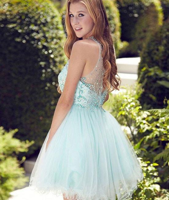 Description for this Baby Blue Tulle Prom Dress,Tulle Homecoming Dress with Beads.