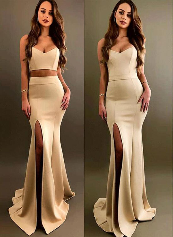 Sexy Two Piece Mermaid Sweetheart Split Front Long Prom Dress
