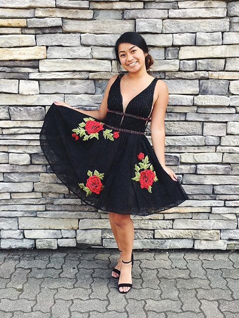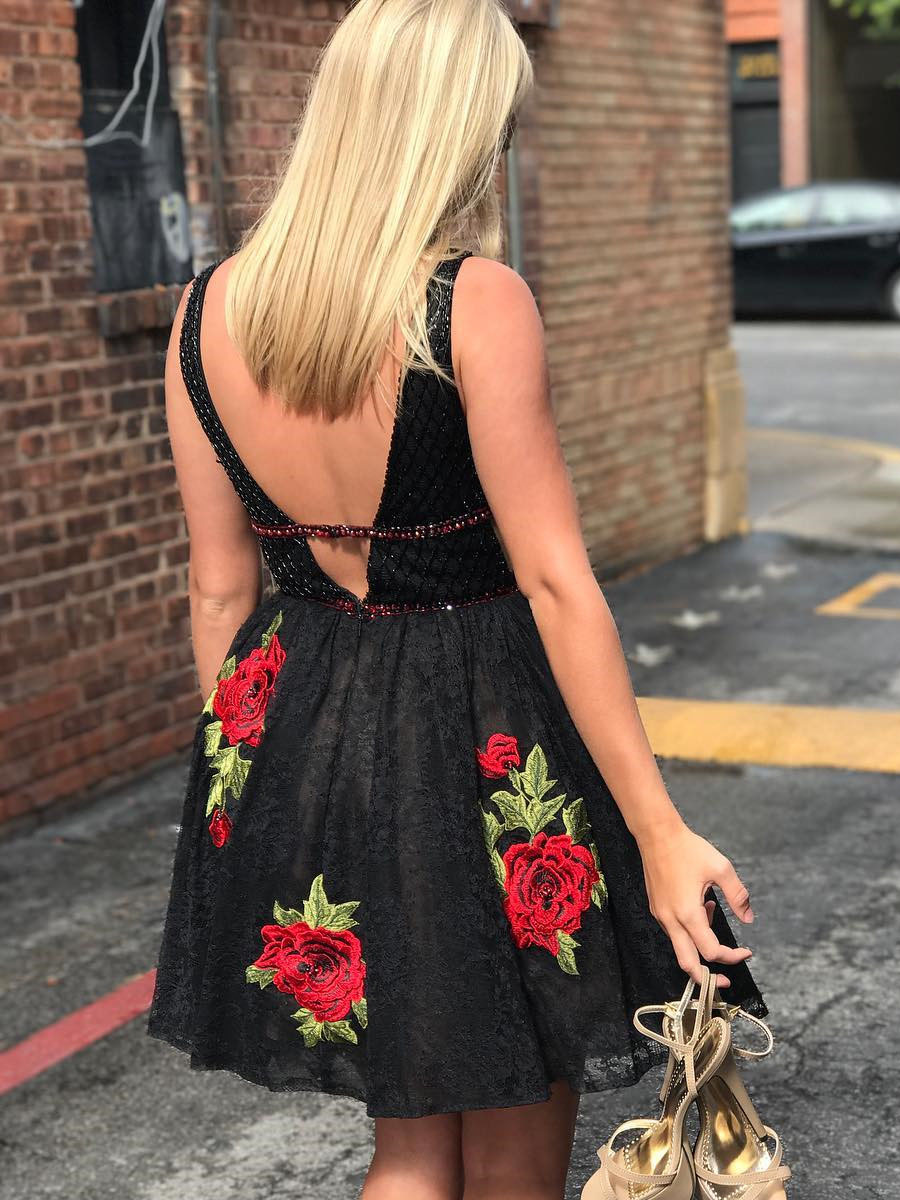 2.Color: picture color or other colors, there are more than 100 colors are available, please contact us for more colors for this Black Lace Short Homecoming/Prom Dress with Embroidery.