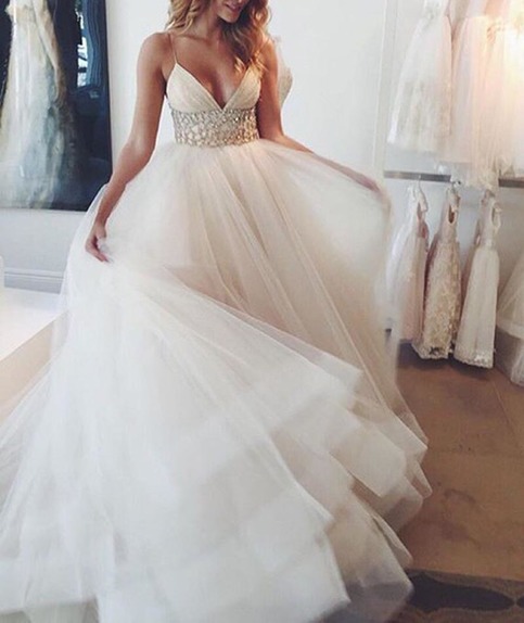 Description for this V Neck Tulle Sequin White Long Prom Dress