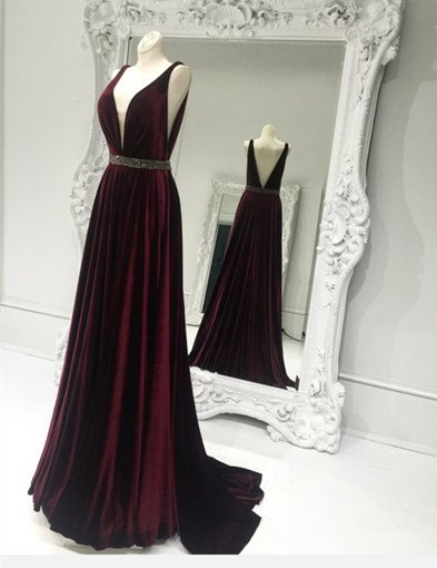 Burgundy V Neck Velvet Long Formal Prom Evening Gowns,Burgundy Bridesmaid Dress