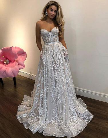 2.Color: picture color or other colors, there are more than 100 colors are available, please contact us for more colors for this white sweetheart lace long prom dress.