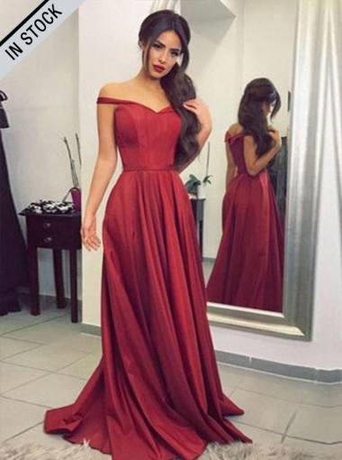 Burgundy off shoulder long satin prom dress, burgundy evening formal dress