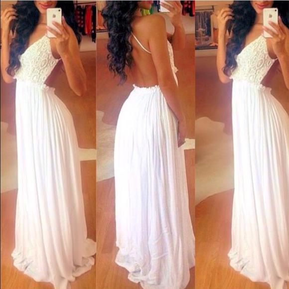 2.Color: picture color or other colors, there are more than 100 colors are available, please contact us for more colors for this White Lace Backless Prom Dress.