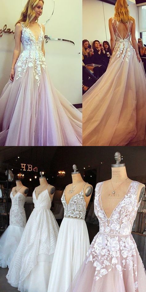 2.Color: picture color or other colors, there are more than 100 colors are available, please contact us for more colors for this A-Line V-Neck Open Back Sweep Train Pearl Pink Prom Dress with Appliques.