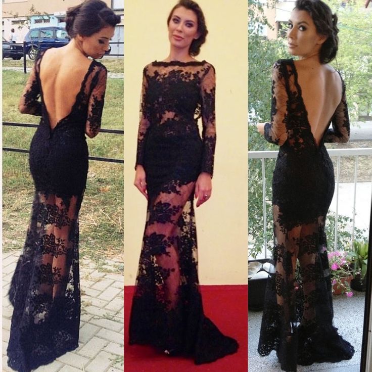 Description for this Fashoin Sexy Vintage Long Sleeve V Back Black Lace Maxi Dress,Lace Mermaid EveningProm Dress .