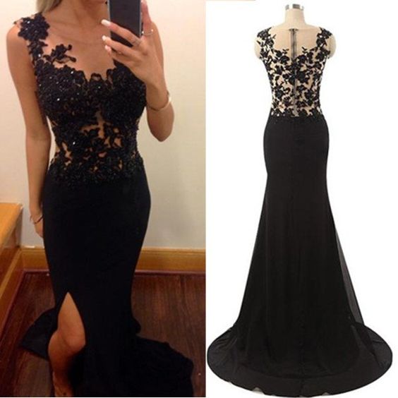 2.Color: picture color or other colors, there are more than 100 colors are available, please contact us for more colors for this Mermaid Black Illusion Lace Side Split Prom/Evening Gown.