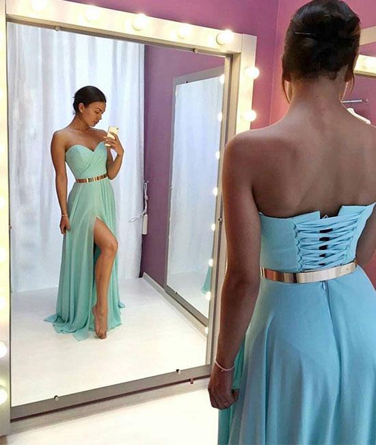 2.Color: picture color or other colors, there are more than 100 colors are available, please contact us for more colors for this Light Blue Long Chiffon Prom/Evening Dress 2018 .