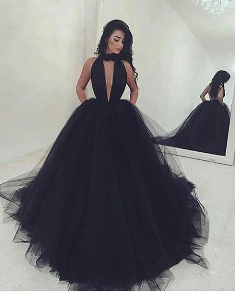 2.Color: picture color or other colors, there are more than 100 colors are available, please contact us for more colors for this Halter Black Tulle Long Backless Prom/Evening Dress .
