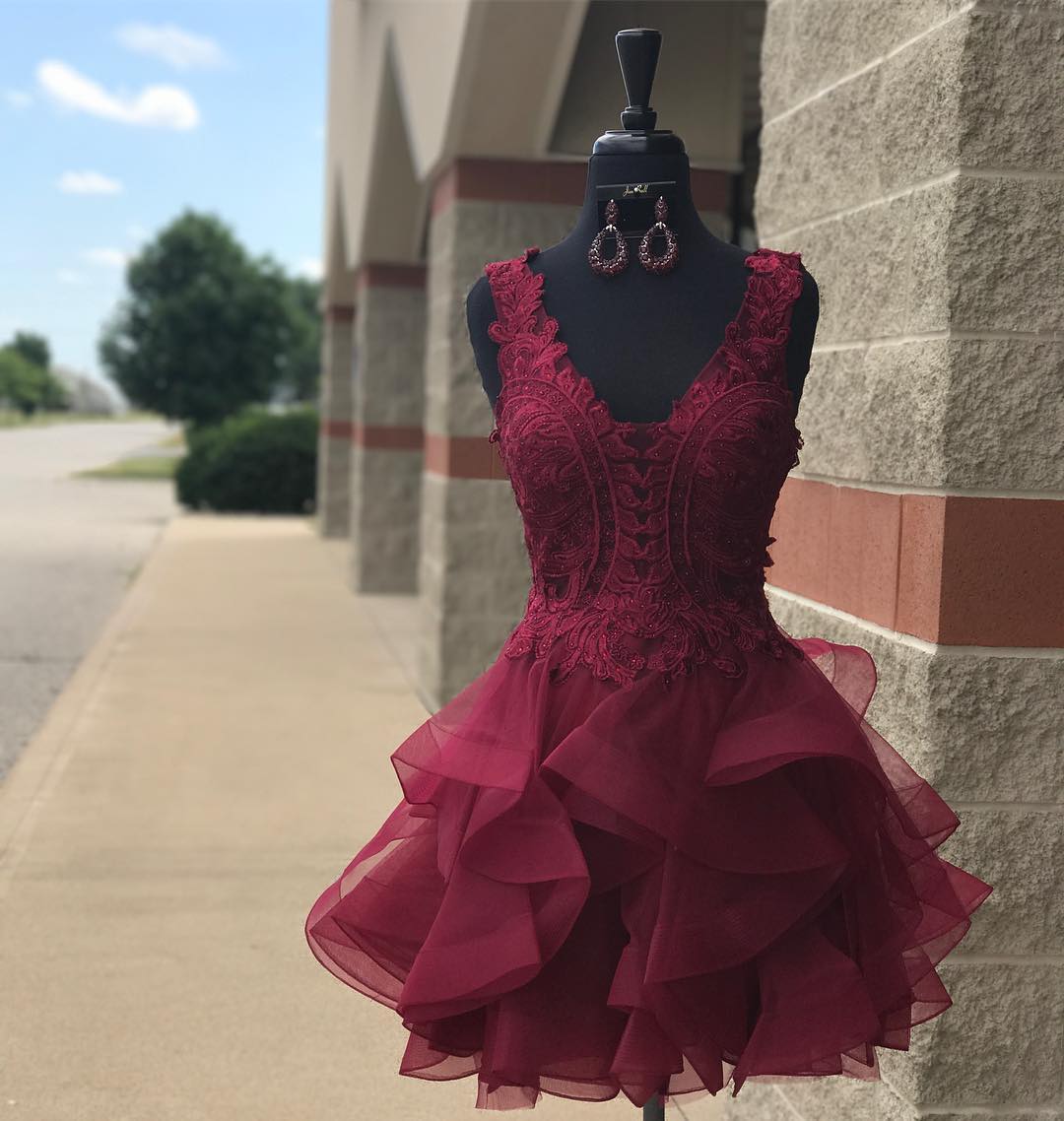 Burgundy Short Tulle Homecoming Dress ,Short Pretty Burgundy Lace Homecoming Dress