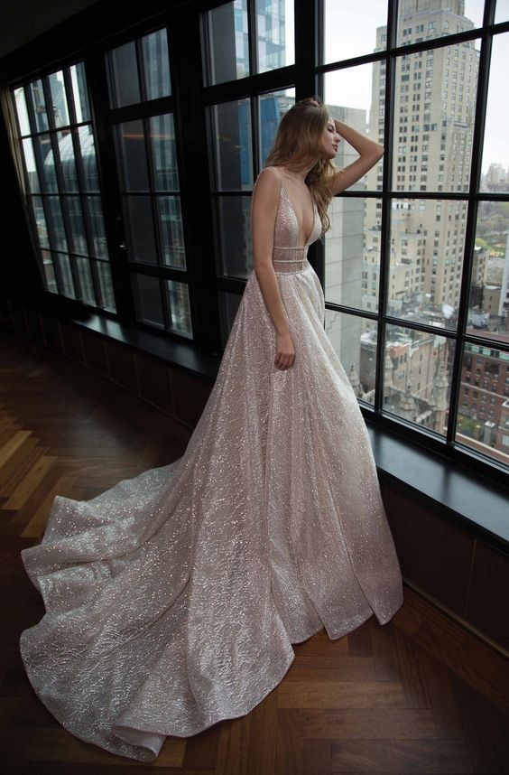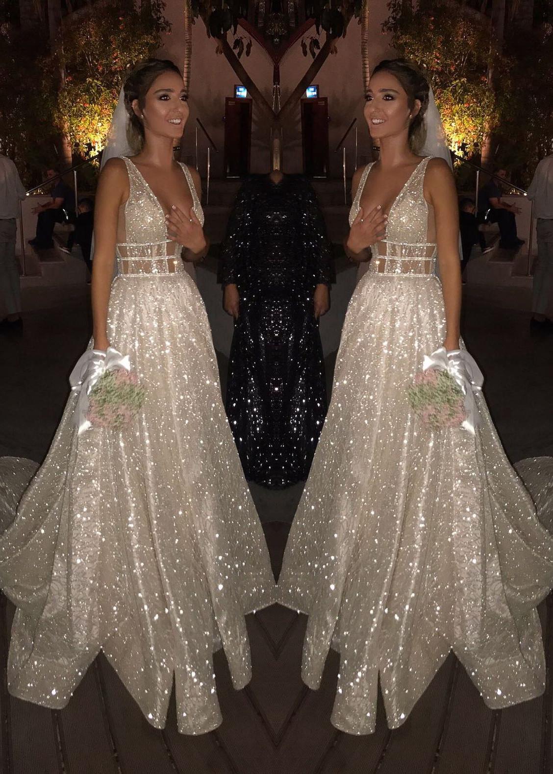 White Sparkly Wedding Dress,Sexy Sparkly Low Back Prom/Evening Dress,Pageant Dress 2018