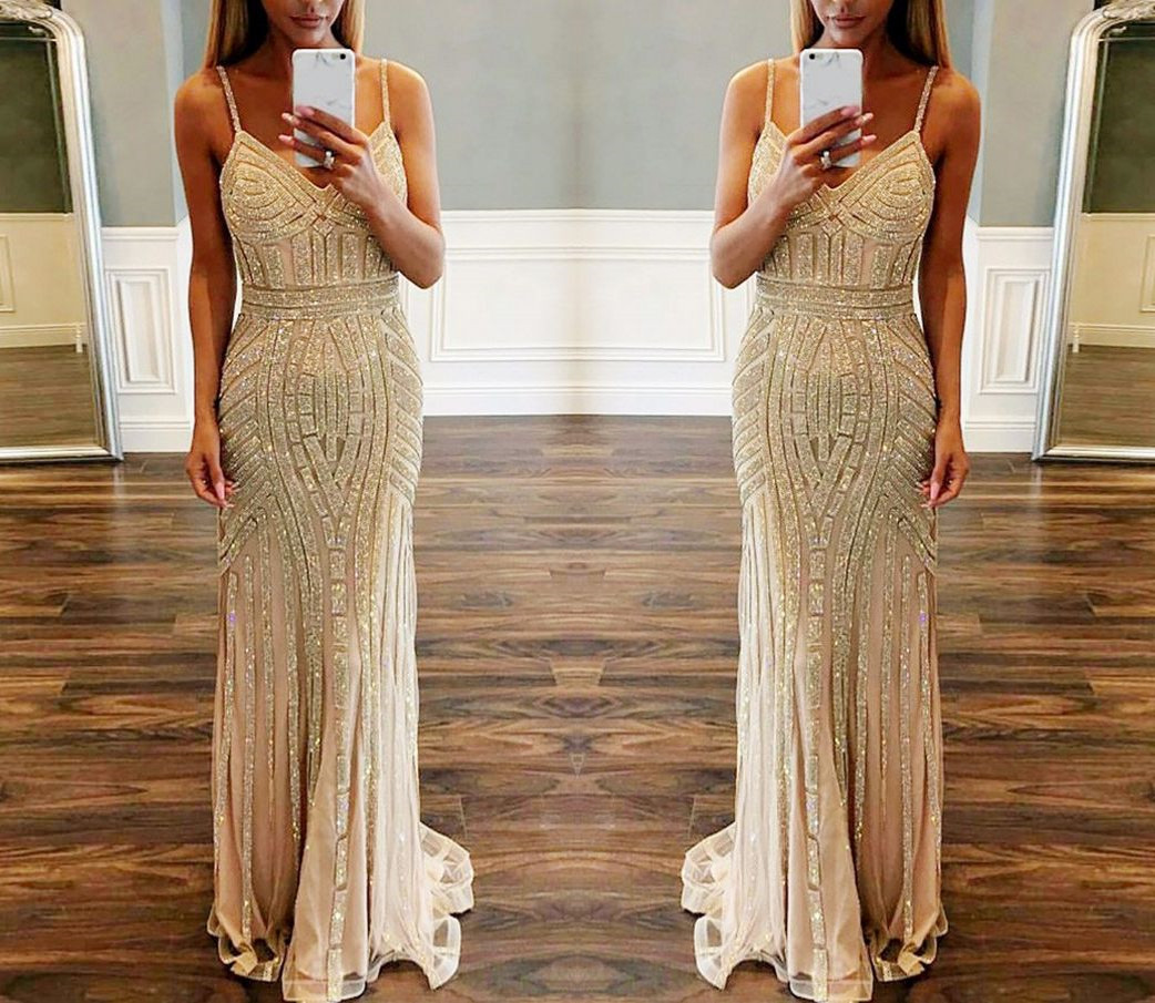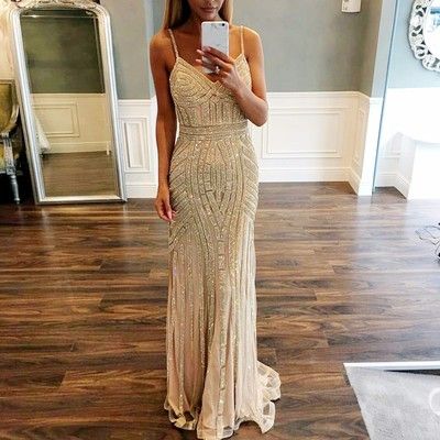 Description for this Sparkly Champagne Prom/Evening Gowns,Mermaid Shiny Evening Gowns.