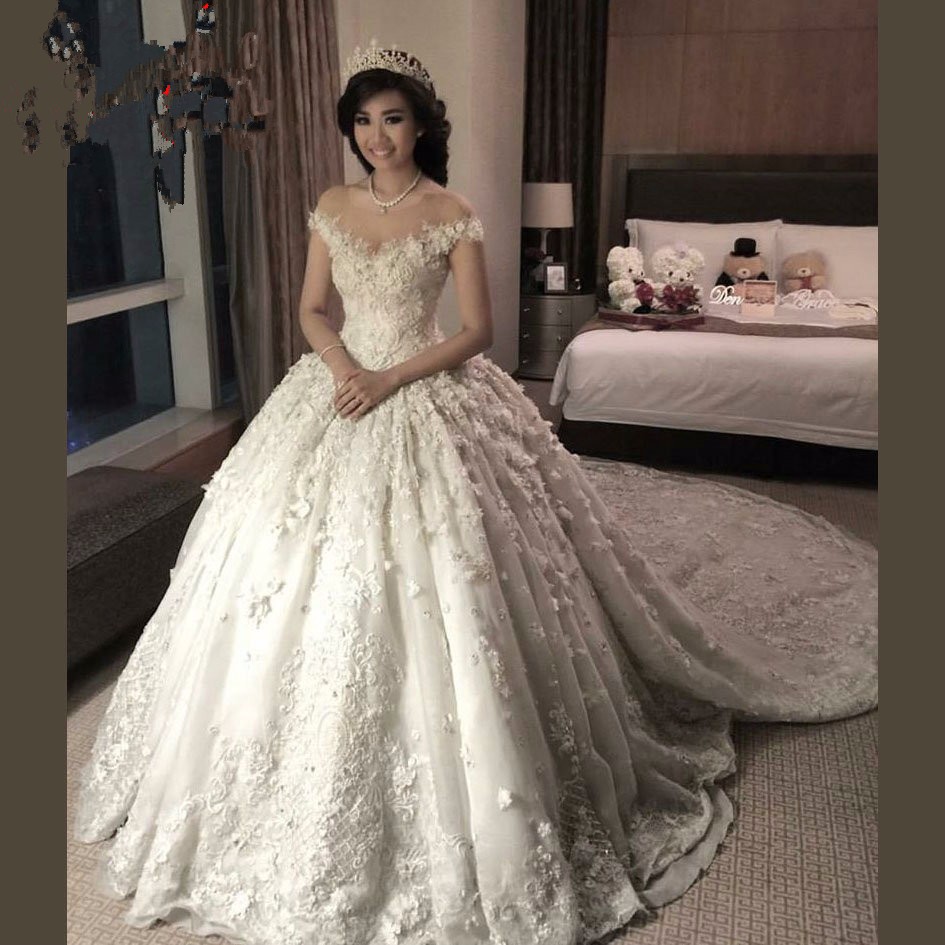 Luxury Ball Gown Wedding Dress,Lace Gown Bridal Dress,Vintage Ball Gown Off Shoulder Wedding Dress