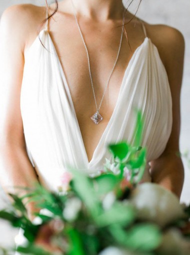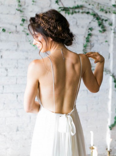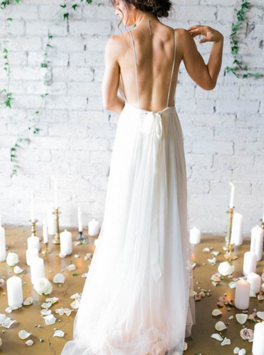 Description for this A-Line Deep V-Neck Sweep Train Backless Ivory Chiffon Wedding Dress with Pleats.