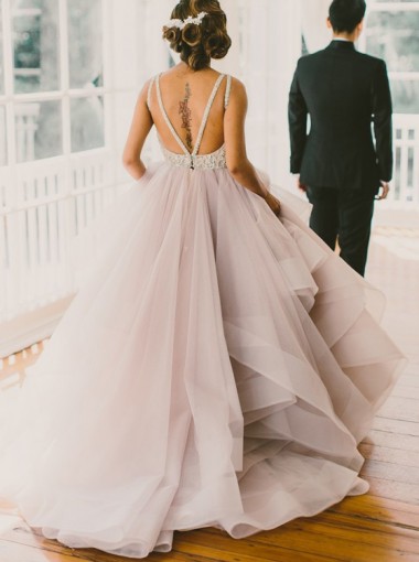 2.Color: picture color or other colors, there are more than 100 colors are available, please contact us for more colors for this Organza Lace Grey Open Back Wedding Dress Cheap Online.