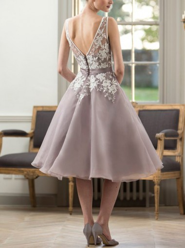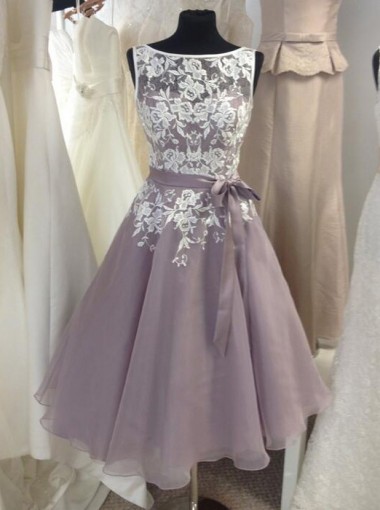 Description for this Backless Short Bridesmaid Dress with White Lace Appliques .