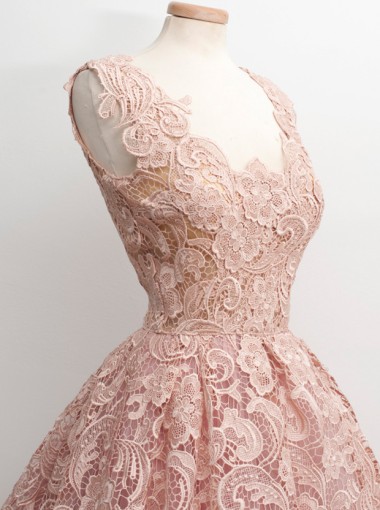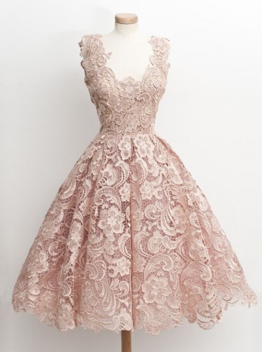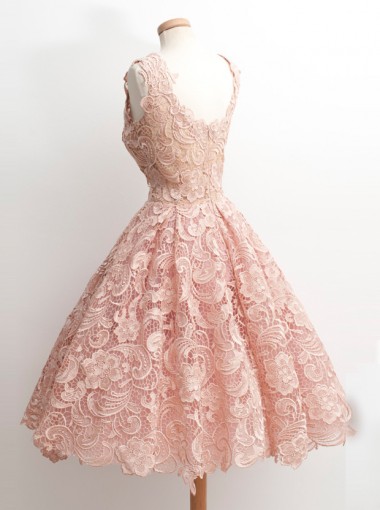 Vintage 50s Style Knee-Length Sleeveless Lace Blush Prom/Homecoming Dress