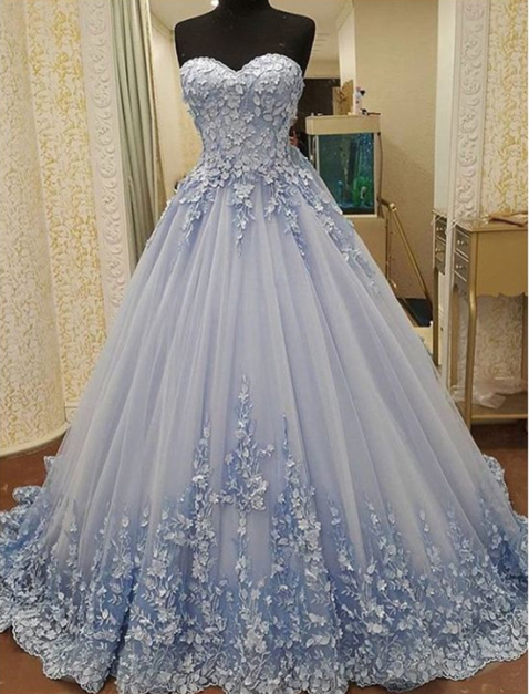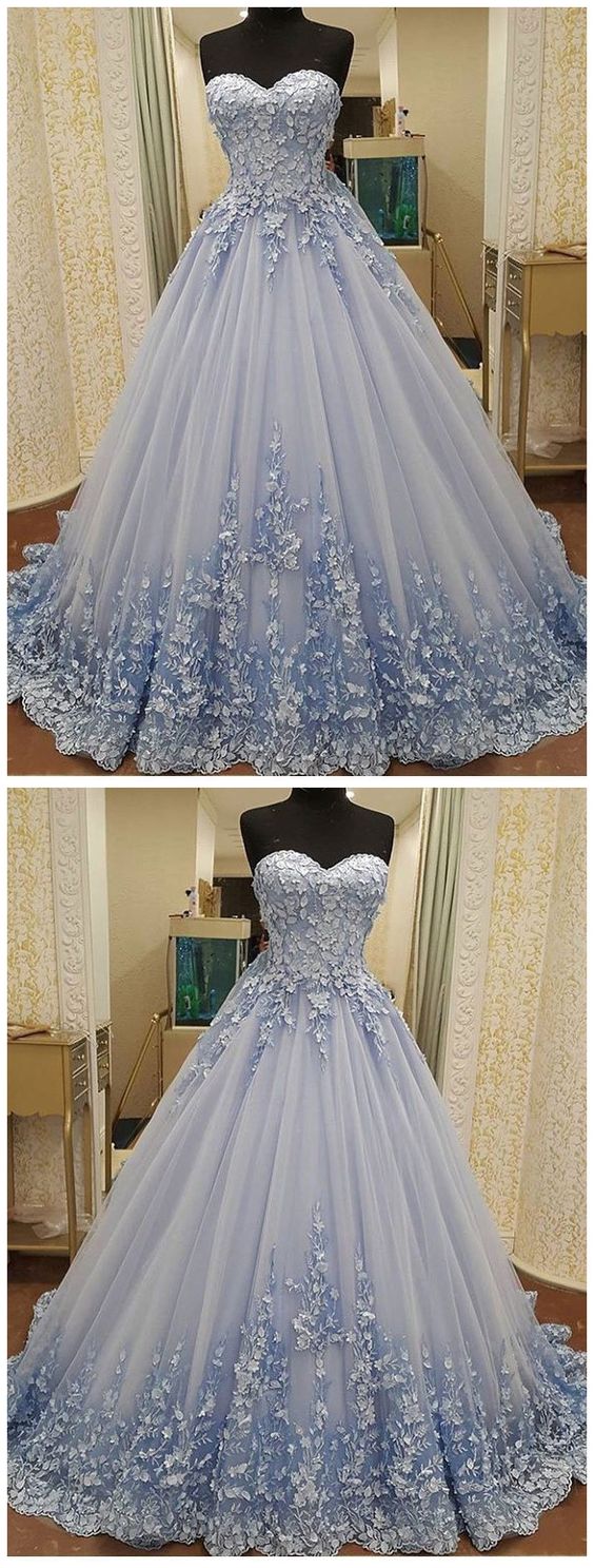 Description for this Sexy Ball Gown Appliques Prom Dresses, Dusty Blue Formal Evening Gown.