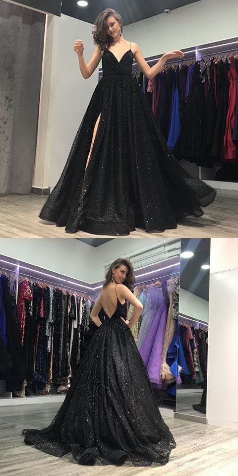 2.Color: picture color or other colors, there are more than 100 colors are available, please contact us for more colors for this Spaghetti Straps Long Black Sparkly Prom/Evening Dress.