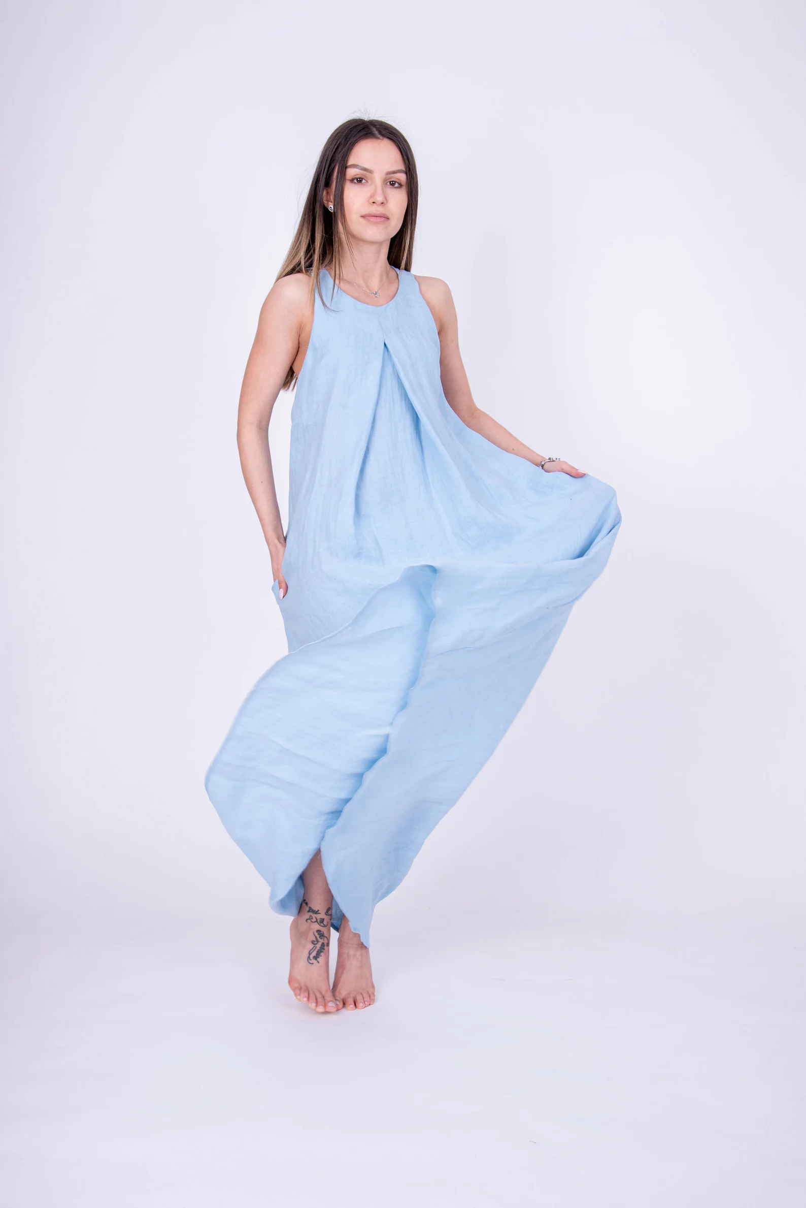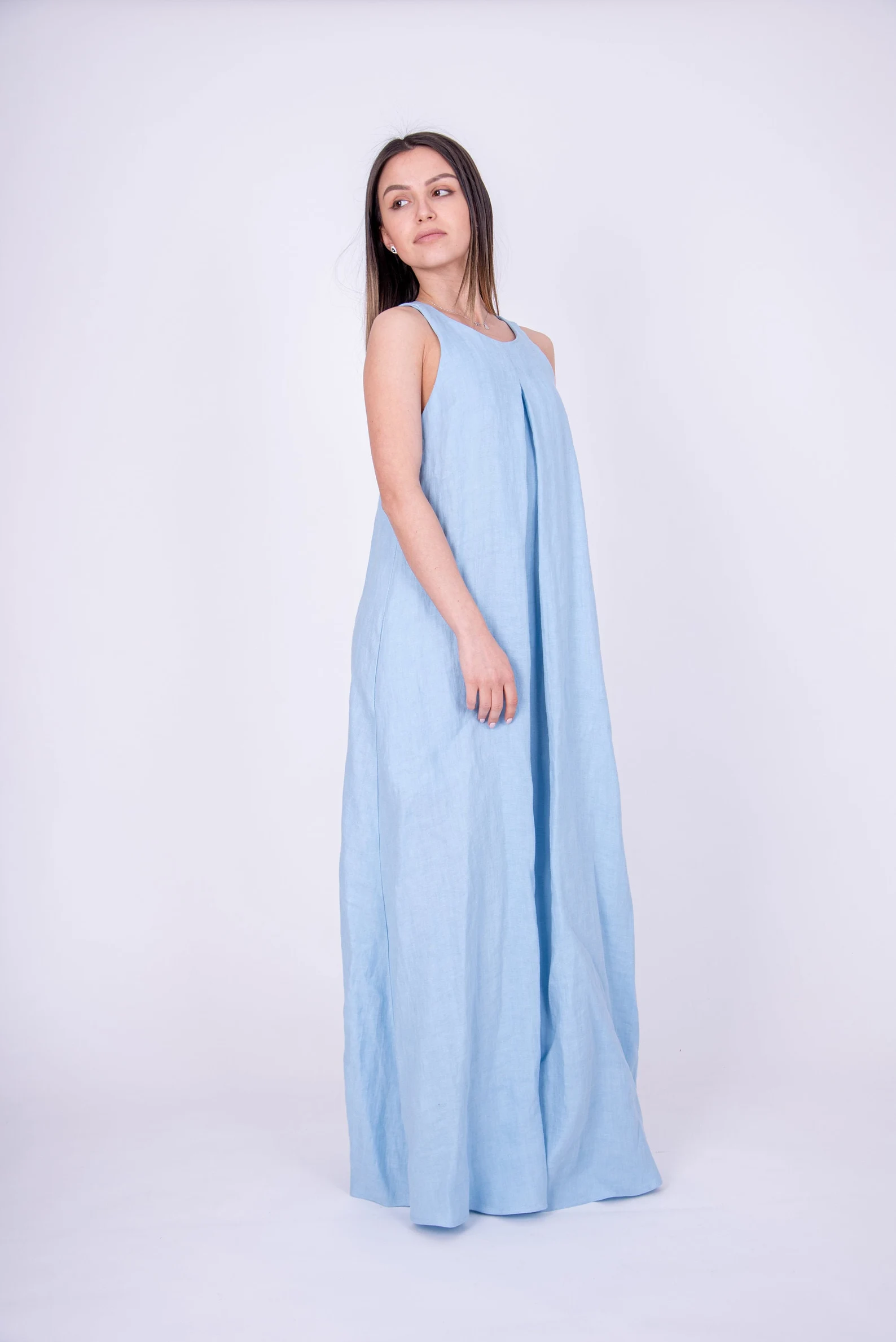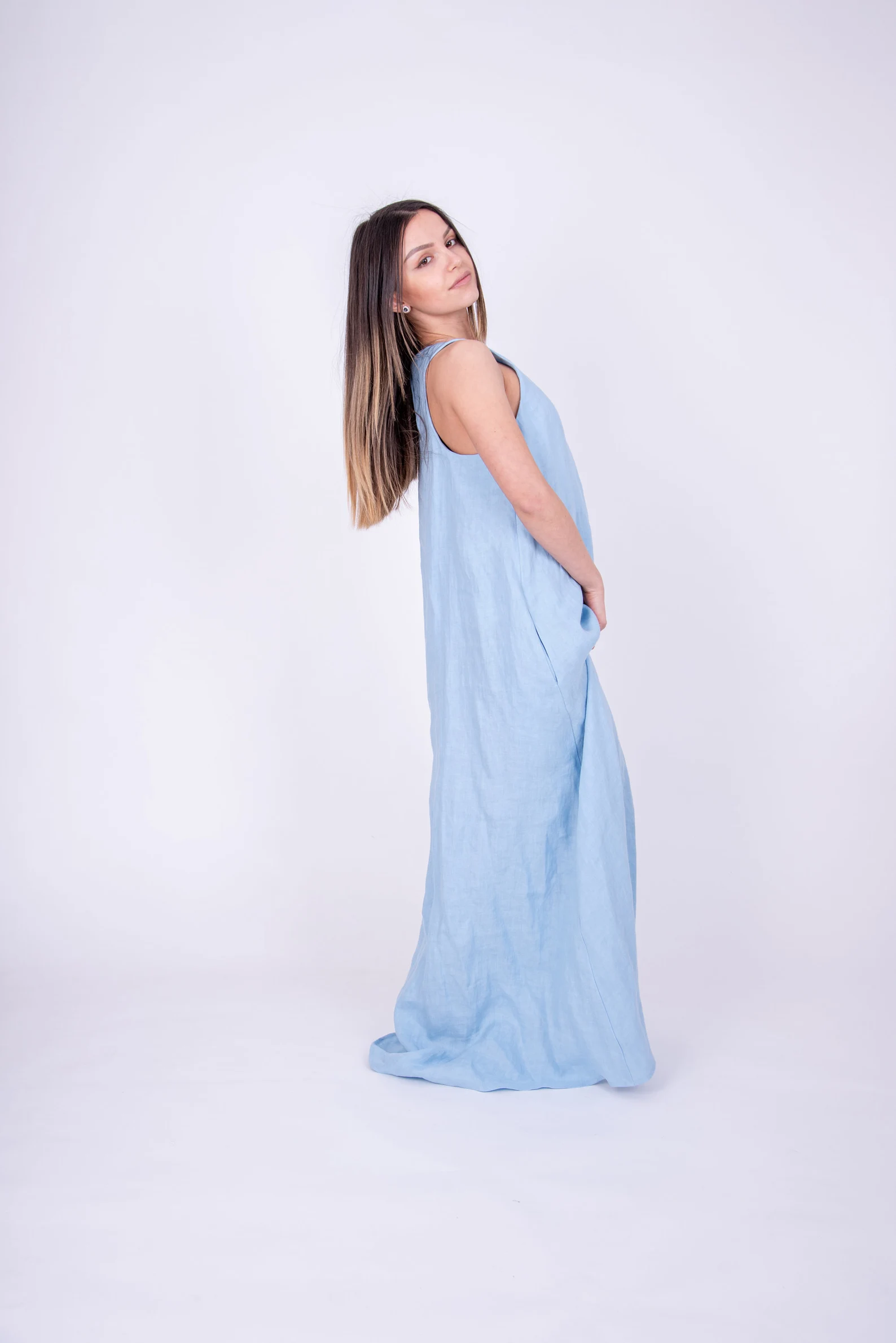 Light Blue Sleeveless Linen Maxi Dress ,Flowy Summer Dress